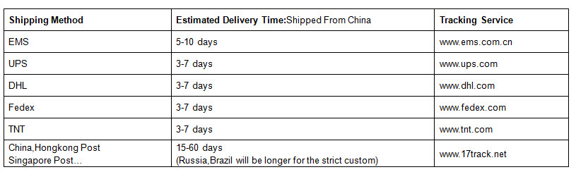 | Post Air Mail | Free Shipping | 15 - 45 days |