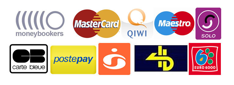 You can pay using Money bookers, Visa, MasterCard, QIWI and bank transfer.You can also pay with select debit cards,including Maestro, Solo, Carte Bleue, PostePay,CartaSi,4B and Euro6000.For the other payment methods,please contact us to confirm.