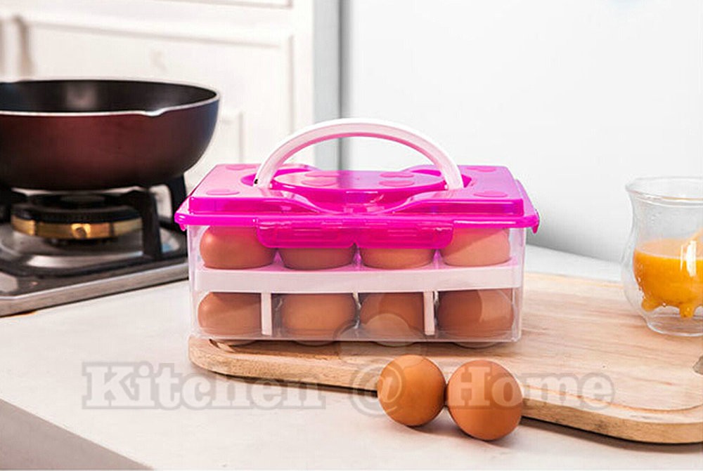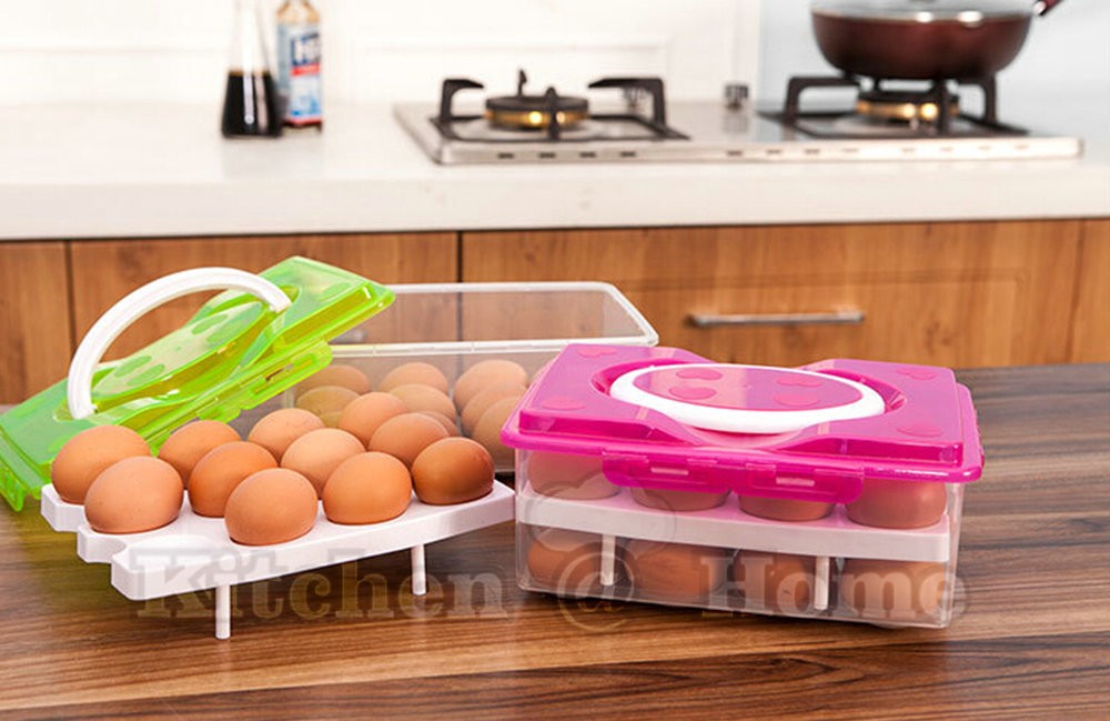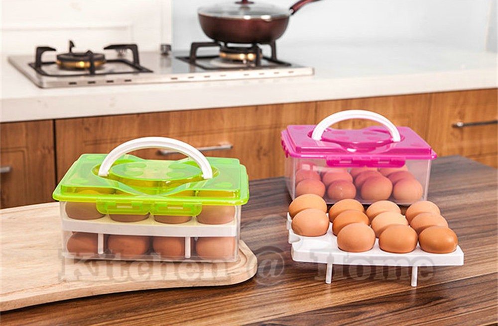24 Grid Bilayer Egg Food Container Storage Box Keep Eggs Fresh Basket Organizer Kitchen Gadgets Items Supplies K401