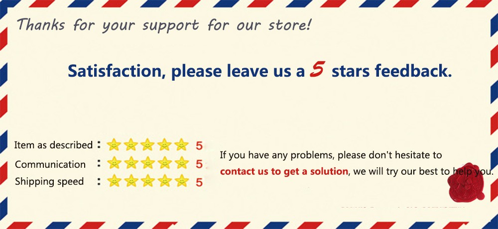5. If you have any question about your order, please contact us at first rather than open a dispute. We will try our best to solve the problem for you.